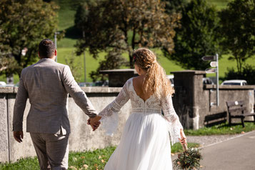 "Thomas wurde uns von unserer Traurednerin Sandr Vetsch-Bischofberger empfohlen. Er habe eine schöne, tiefe und etwas raue Stimme. Das hat uns überzeugt, und wir wollten Thomas unbedingt kennenlernen. Die Kontaktaufnahme gestaltete sich sehr unkompliziert. Beim ersten Videocall fiel uns sofort seine Leidenschaft für die Musik auf. Wir haben schnell Vertrauen gefasst und Thomas für unsere Hochzeit als Sänger und DJ gebucht. Das war eine sehr gute Entscheidung. Thomas hat unsere Trauung wunderbar mit Gesang und Gitarre begleitet. Dazu muss erwähnt sein, dass Thomas alle gewünschten Lieder eingeprobt und superschön auf seine eigene Art gesungen hat. Am Abend haben wir die Location gewechselt - auch das war für Thomas kein Problem. Er ist technisch super ausgestattet und findet sich selbst zurecht. Sein Konzept mit den Song-Wunschzetteln kam bei unseren Gästen super an. Thomas hat unser Fest bis in die Morgenstunden begleitet. Wir hätten uns keinen besseren Musiker vorstellen können und empfehlen Thomas 100% weiter." - Vanessa & Andy